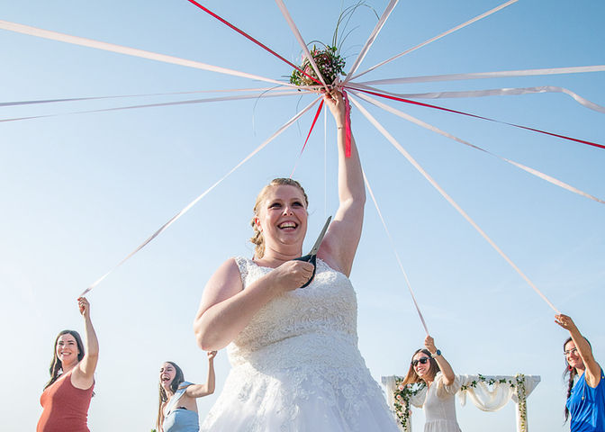 La sortie des mariés fait partie des plus beaux instants à vivre et à photographier : enfin marié, le couple est accueilli par les amis et familles et le bonheur des mariés se lit sur leurs sourires. Avec tout le monde autour de soi, c'est aussi le moment idéal pour quelques photos de groupes.